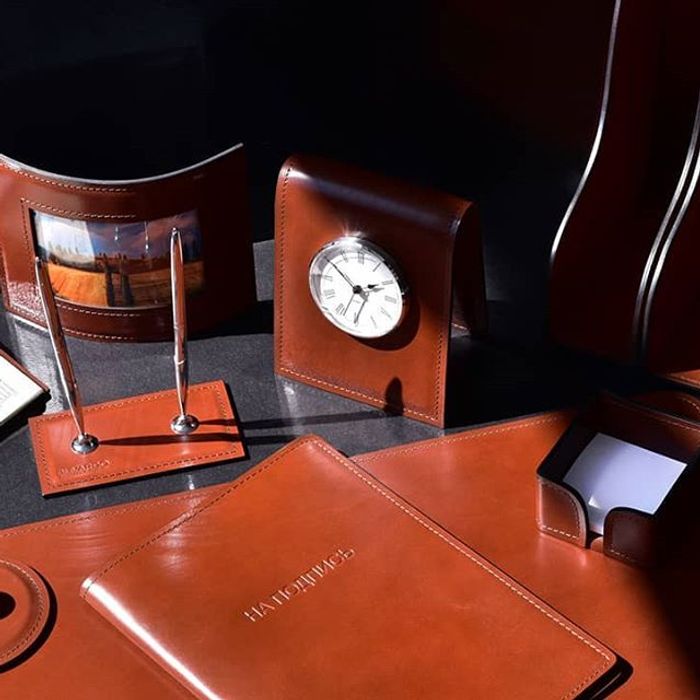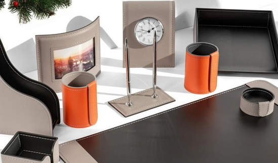 Это категория настольных аксессуаров, отвечающих за организацию пространства кабинет в офисе либо дома. Такая необходимость, как настольный органайзер, создает эффектную обстановку на рабочем столе, и помогает создать образ организованного, собранного человека. Набор из дорогой кожи для рабочего стола – это идеальный подарок для любого руководителя, будь то собственник бизнеса, акционеры компании, директор фирмы.