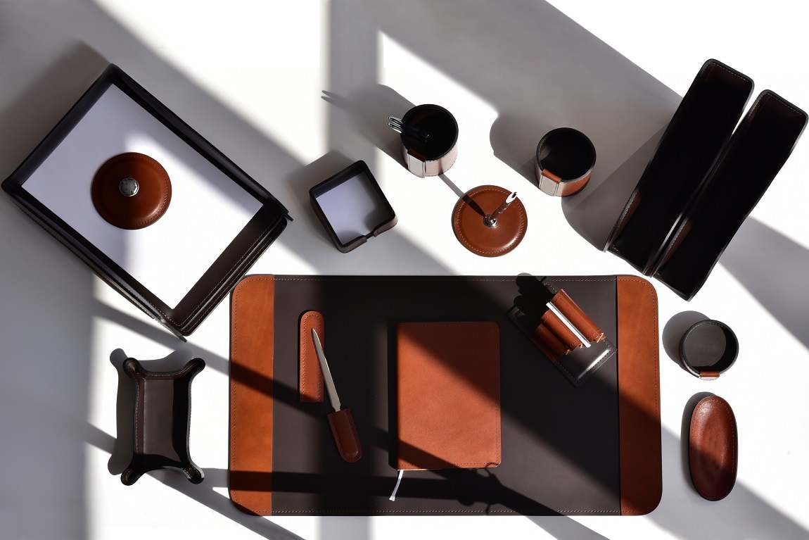 Набор из кожи категории Full Grain Toscana цвет Tan и кожи категории Cuoietto цвет шоколад — то единственное решение, когда появилась проблема где и как купить настольный набор, достойный кабинета представительского класса.