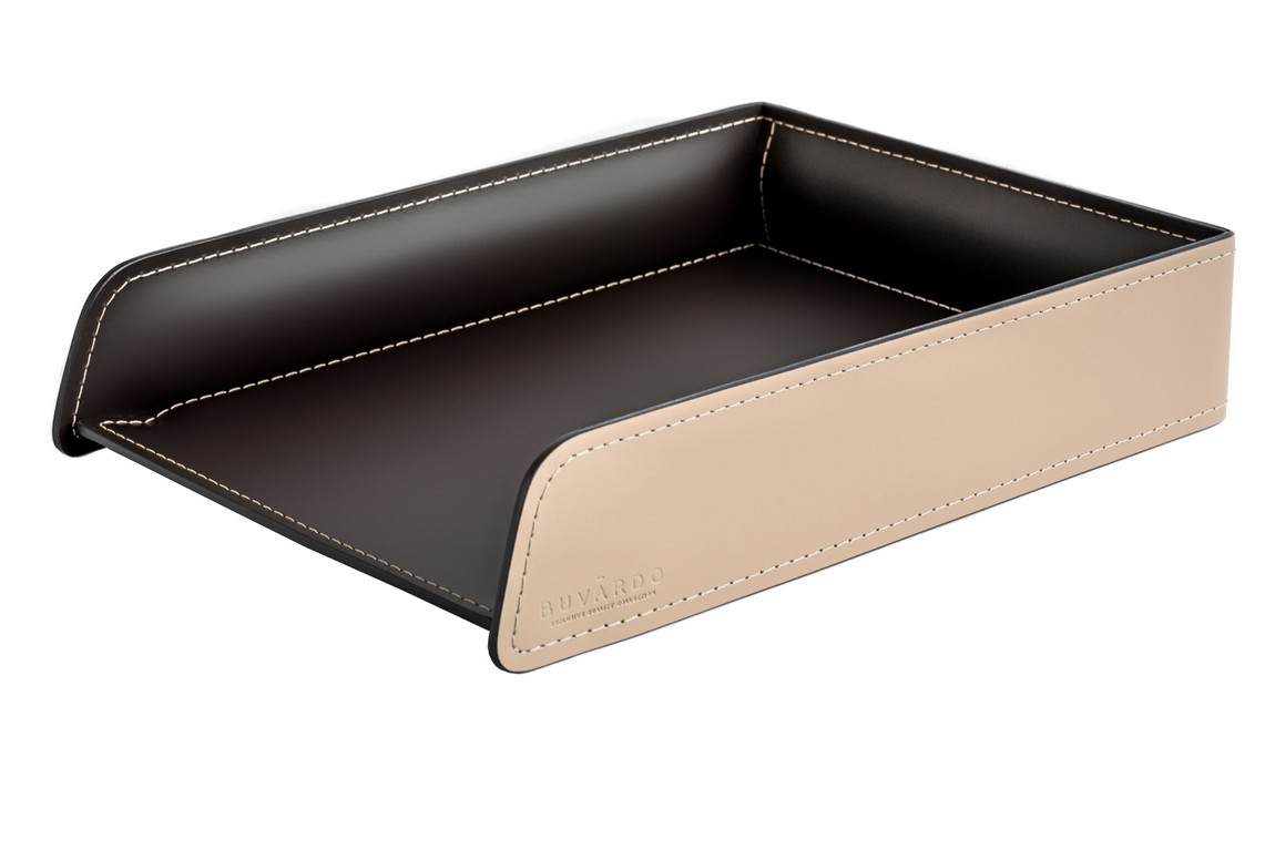 Подставка для бумаг А4, кожа натуральная 2х цветов какао (cafe latte) и шоколад
