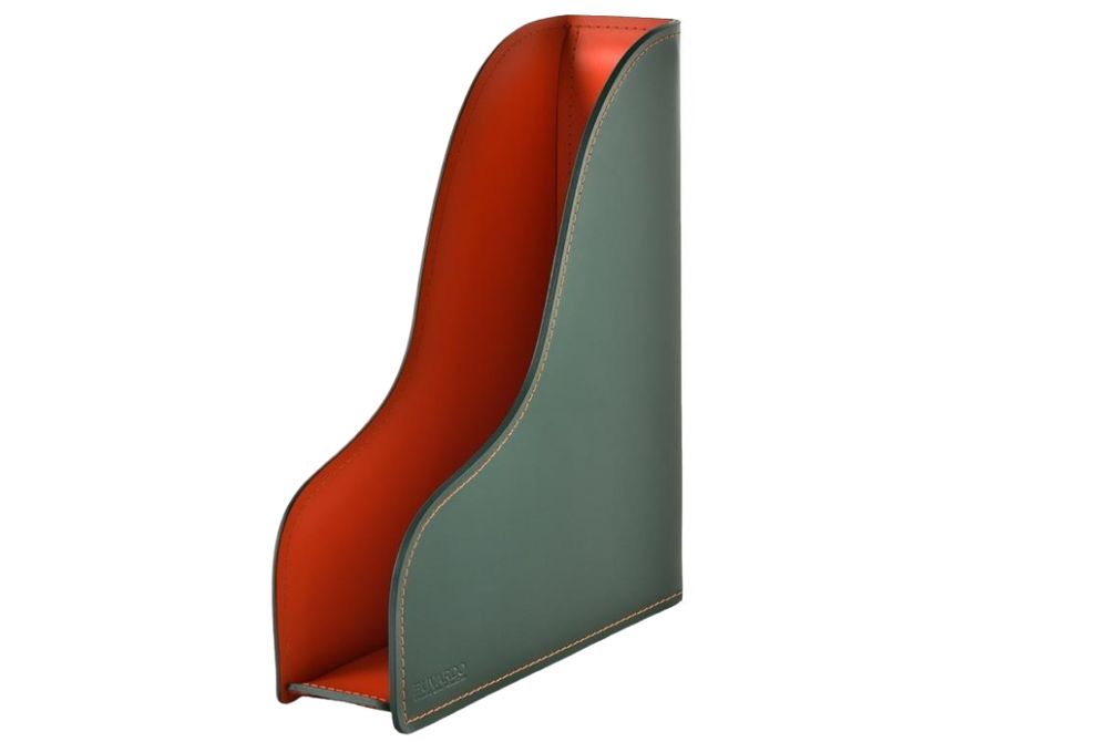 Стойка для бумаг А4, журналов, газет зеленая кожаная двухцветная зелено-оранжевая