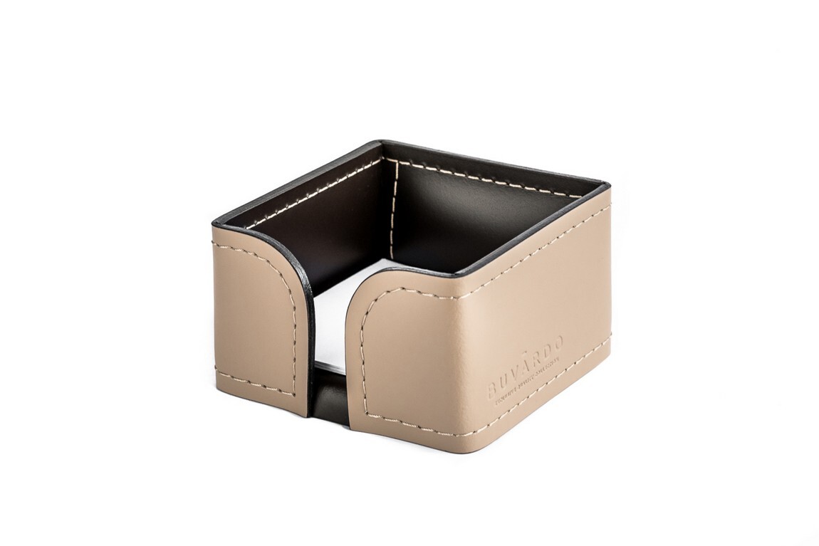 Кожаная подставка из бежевой и шоколадной кожи для бумажного блока