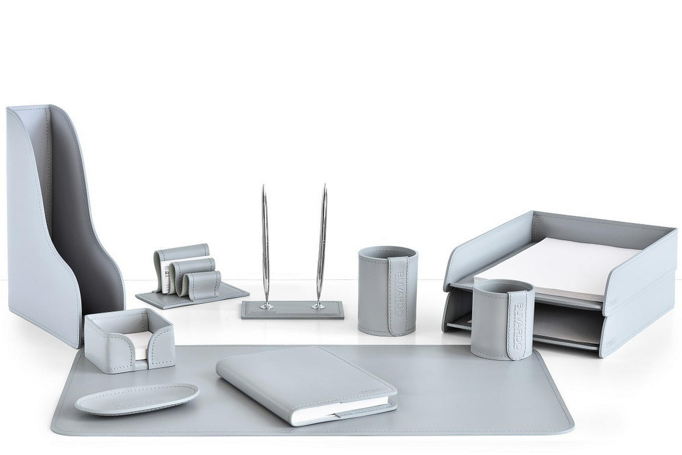 Набор настольный руководителя из 11 предметов из кожи , цвет серый