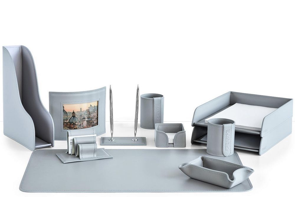 Настольный органайзер руководителя из 11 предметов из кожи Сuoietto, цвет серый