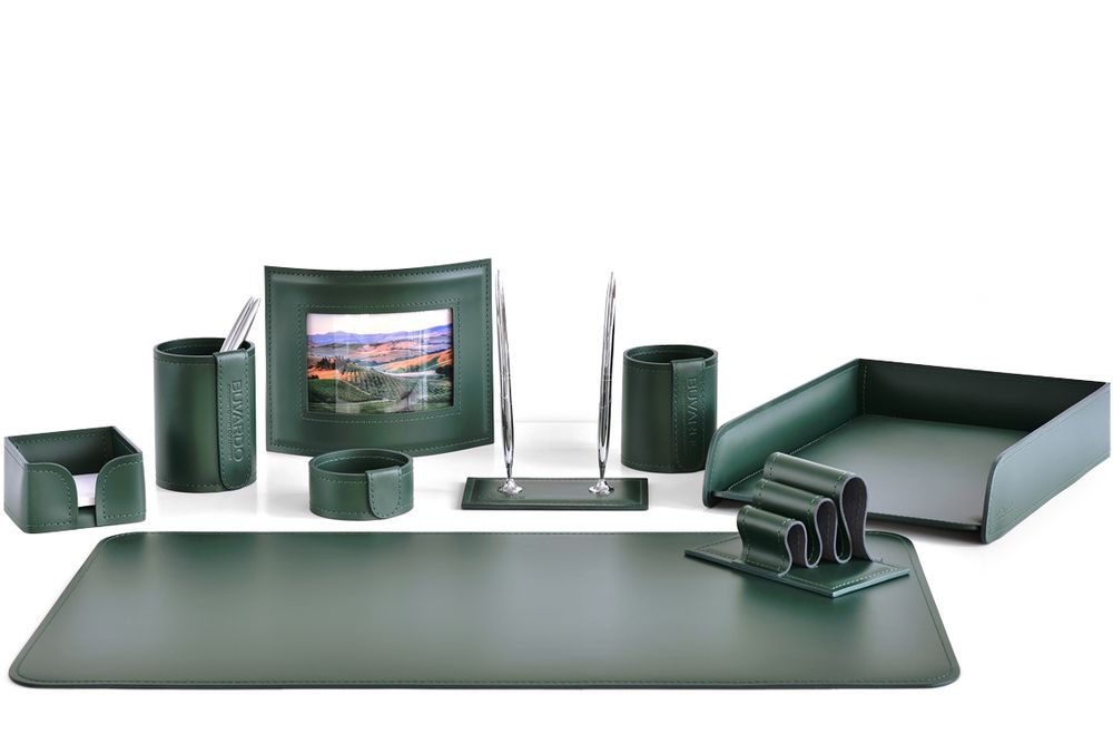 Подарочный настольный набор из 9 предметов из кожи Сuoietto, цвет зеленый