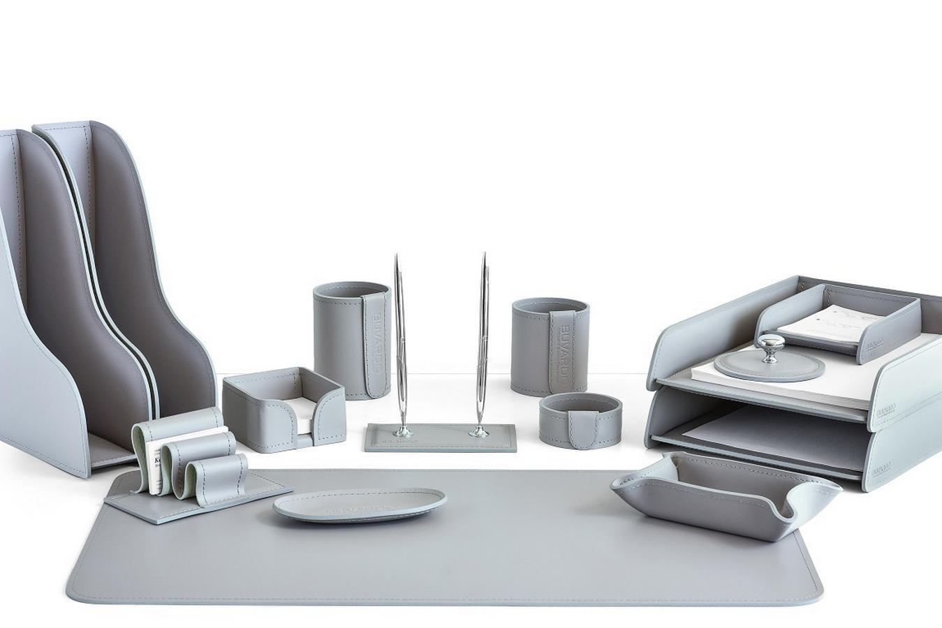 Набор настольный директору в кабинет из 15 предметов из кожи Сuoietto, цвет серый