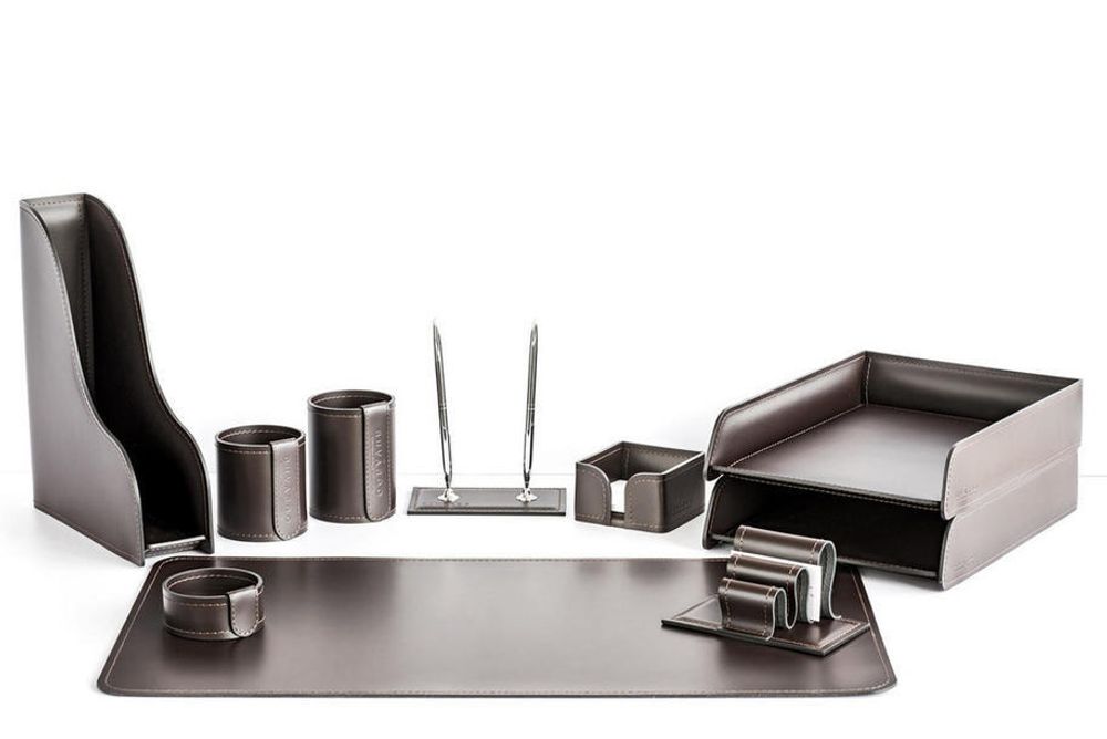 Набор офисный из 10 предметов из натуральной кожи , цвет шоколад
