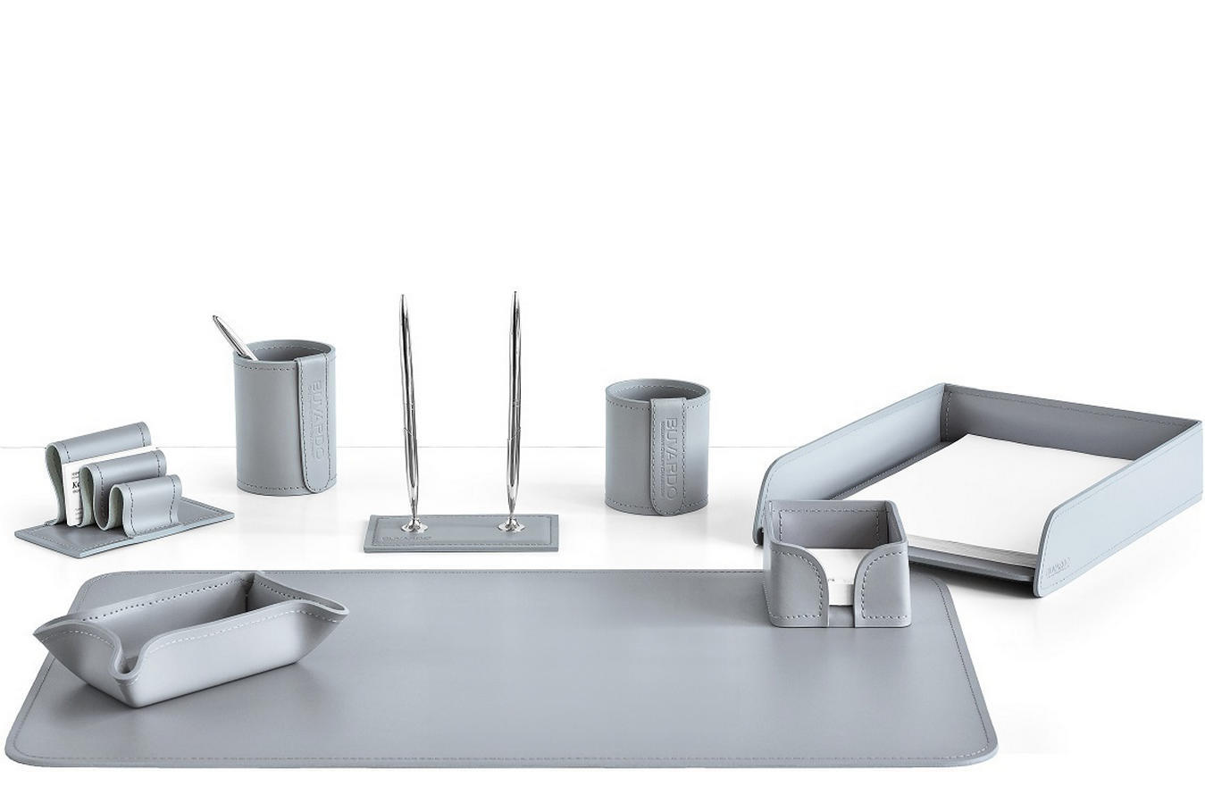 Набор офисный канцелярский из 8 предметов из кожи Сuoietto, цвет серый
