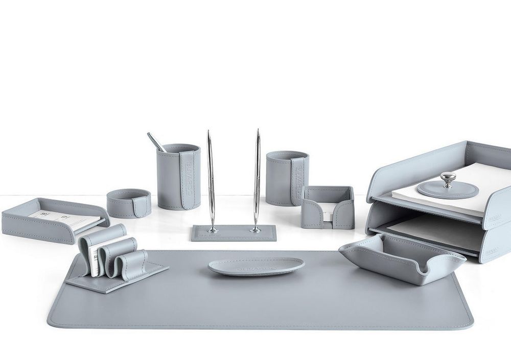 Набор канцелярский настольный из 13 предметов из кожи Сuoietto, цвет серый