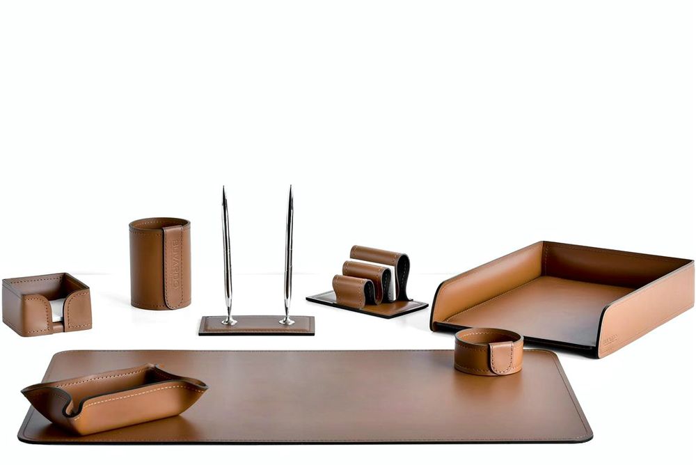 Набор настольный кожаный из 8 предметов цвет табак