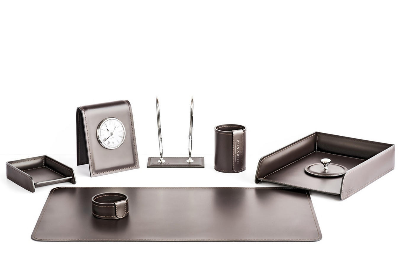 Набор письменных принадлежностей для руководителя из 8 предметов из кожи Сuoietto, цвет шоколад