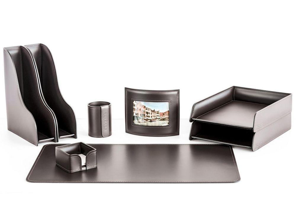 Набор в кабинет руководителя из темно-коричневой натуральной кожи.