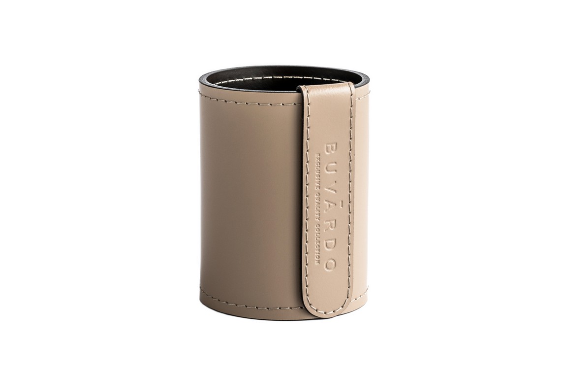 Стакан для карандашей и ручек из бежевой кожи и цвета горький шоколад